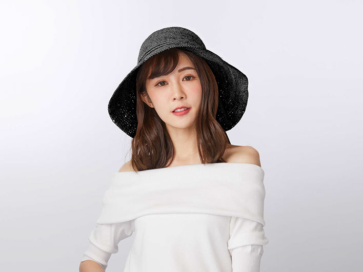 拉菲亞草優雅蝴蝶結中帽簷遮陽帽-黑色