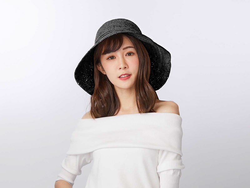 拉菲亞草優雅蝴蝶結大帽簷遮陽帽-黑色10公分